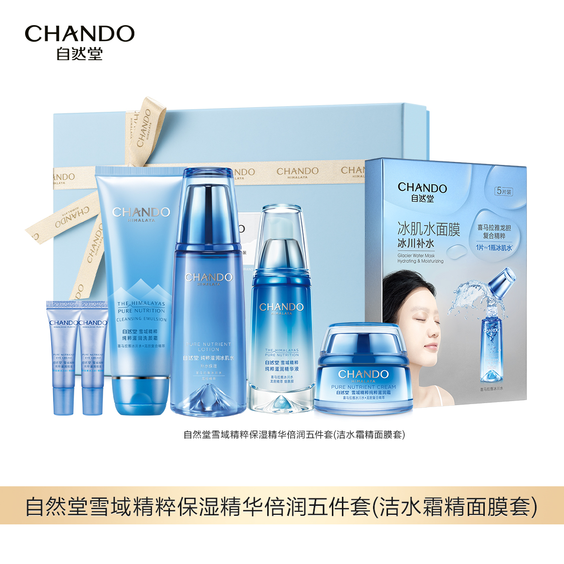 【Q1特卖】自然堂雪域精粹保湿精华倍润五件套(洁水霜精面膜套)