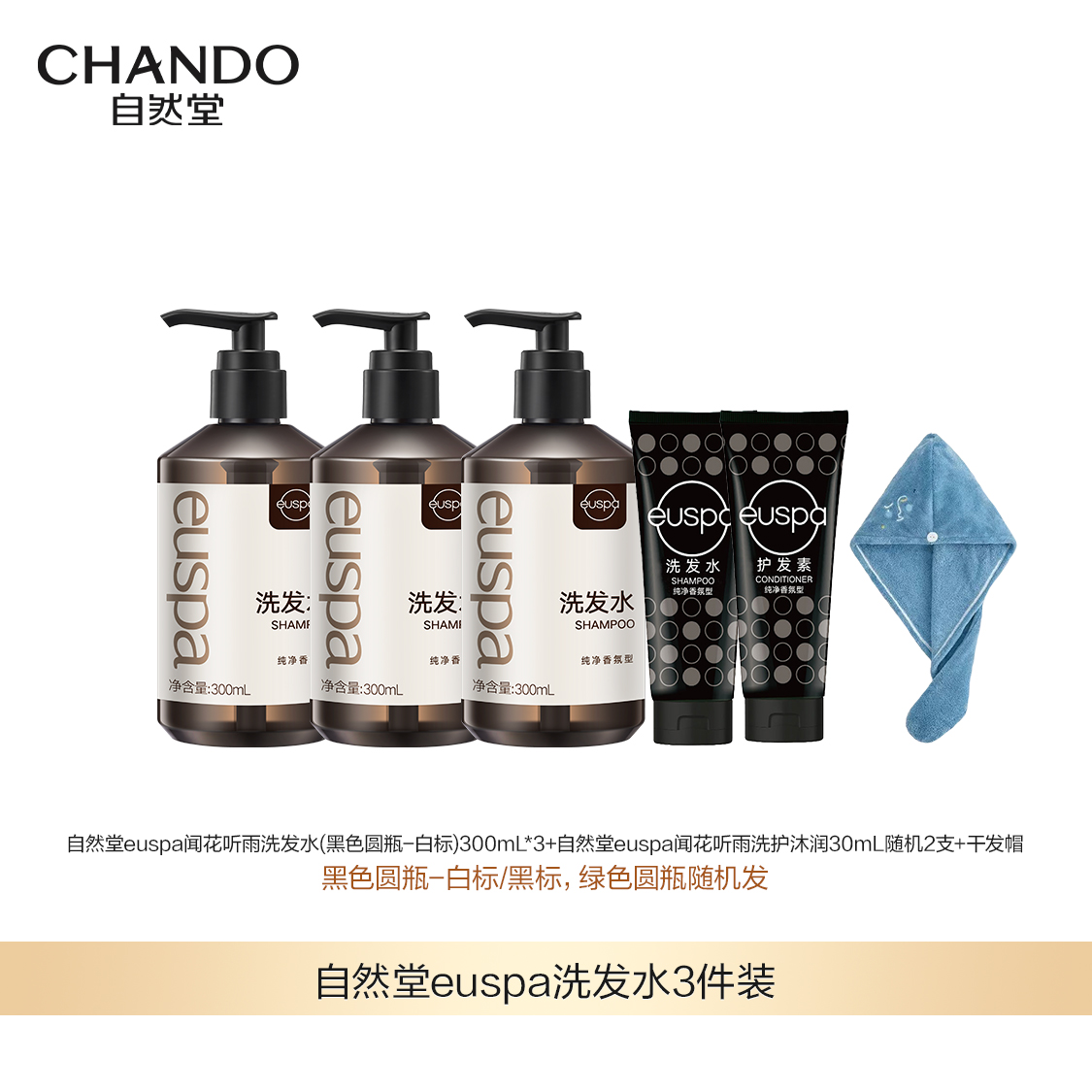 【3月特卖】自然堂euspa洗发水3瓶(赠洗护沐润30ml随机2支)送干发帽1个