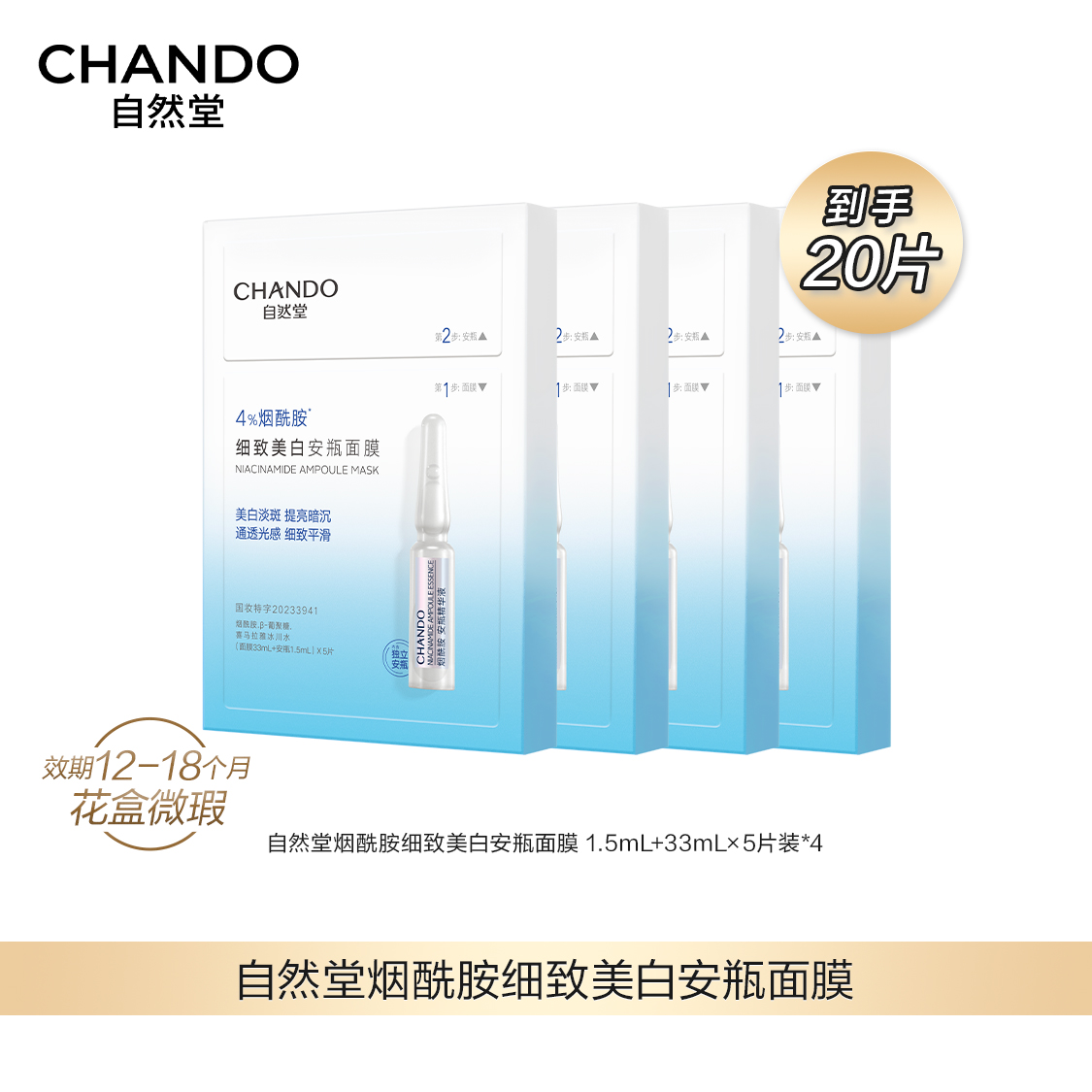 【3月特卖】自然堂烟酰胺细致美白安瓶面膜到手20片